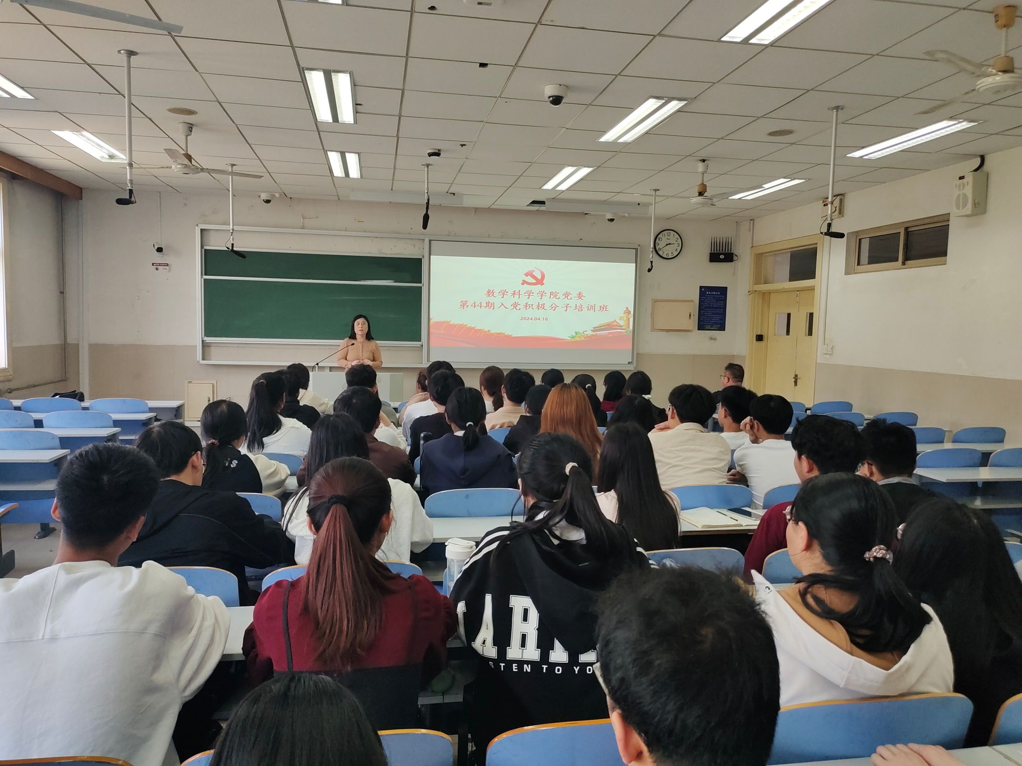 4月16日下午,kaiyun云开登录入口党委第44期入党积极分子培训开班仪式暨专题党课在10J302教室举行。kaiyun云开登录入口党委书记崔英静作开班动员并主讲专题党课,学院全体第44期入党积极分子及学生党支部支委会成员参加。培训活动由kaiyun云开登录入口党委正科级组织员屈昌雷主持。