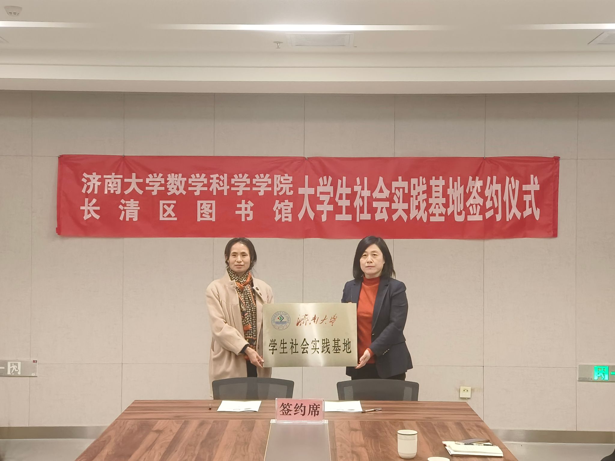 签约仪式上,杨洪霞就长清区图书馆历史发展脉络、馆藏情况、公共服务情况等进行了详细介绍。崔英静对长清区图书馆在公益事业中所做的贡献表示赞赏,感谢长清区图书馆为青年学生提供实践锻炼的平台和机会,并简要介绍了kaiyun云开登录入口的基本情况和学生社会实践开展情况。双方交流充分,表达了对共建大学生社会实践基地的期望和信心。随后,双方代表共同签订了大学生社会实践基地共建协议,并进行了授牌仪式。