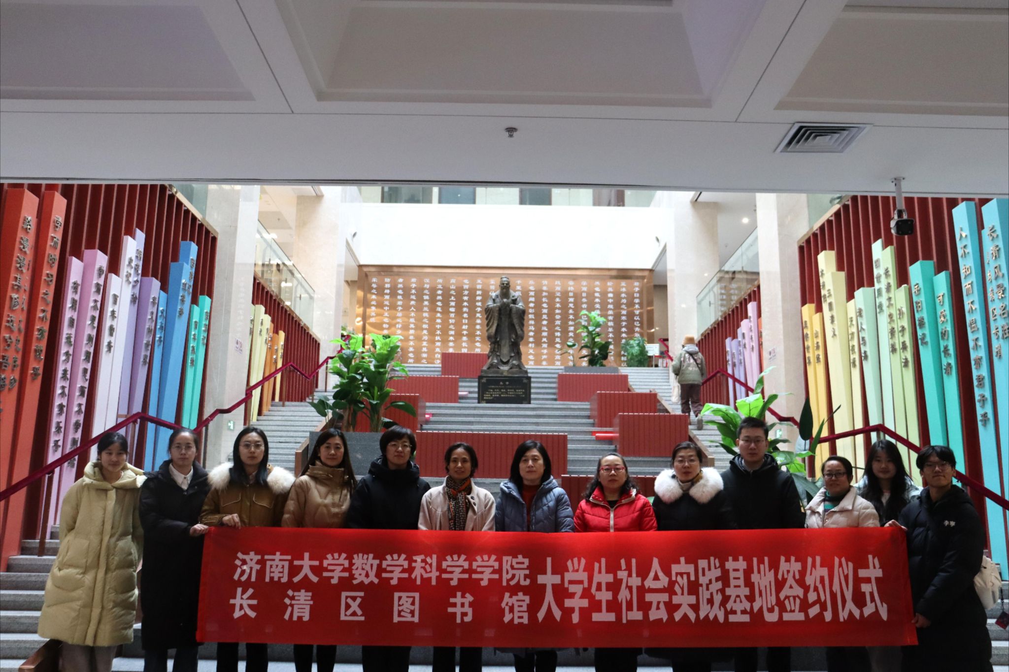 2025年1月11日下午,kaiyun云开登录入口与长清区图书馆共建大学生社会实践基地签约挂牌仪式在长清区图书馆举行。长清区图书馆馆长杨洪霞、kaiyun云开登录入口党委书记崔英静、双方相关工作人员及学生代表参加活动。