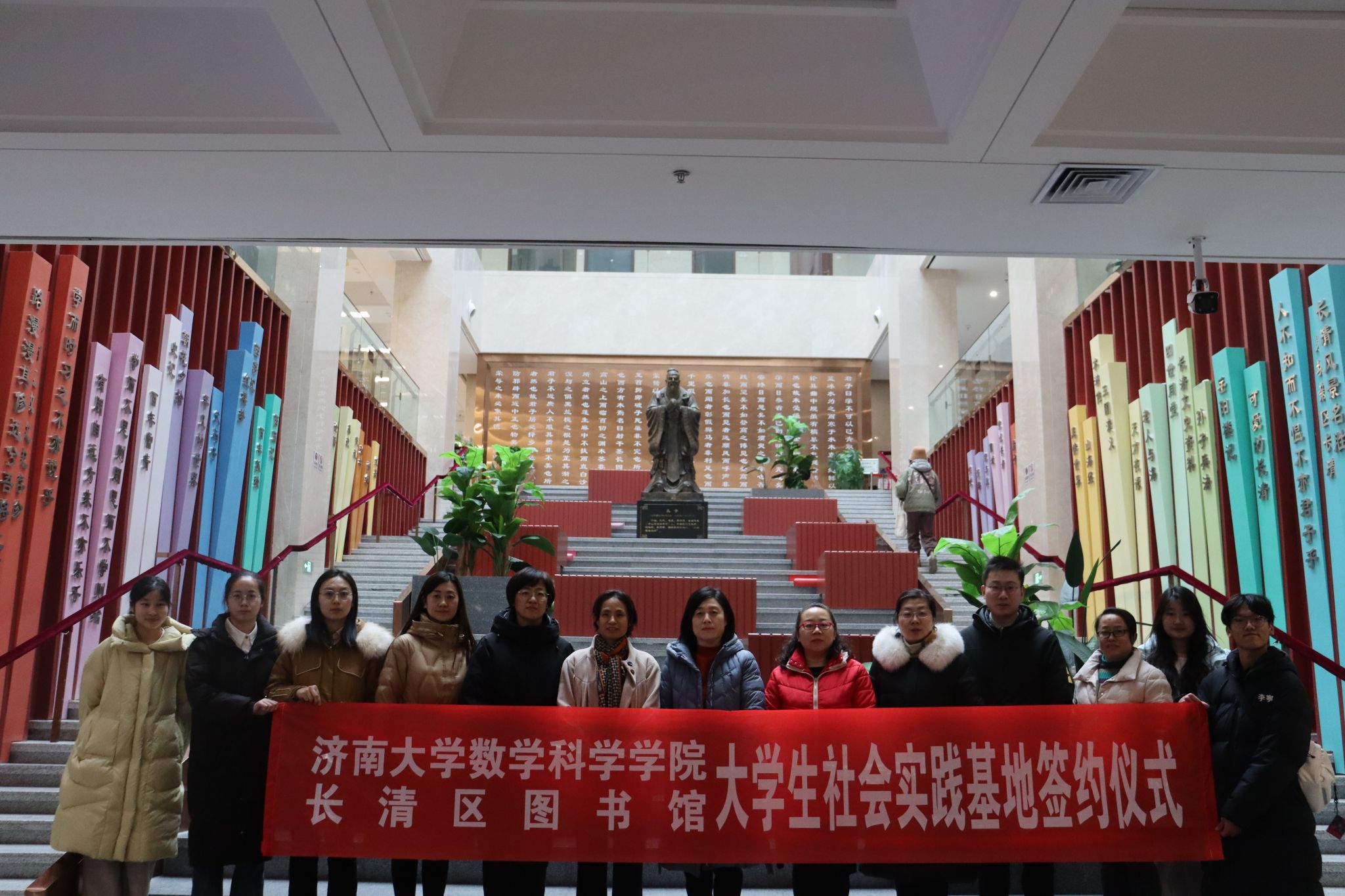 此外,学院于1月11日前往长清区图书馆开展共建大学生社会实践基地签约挂牌仪式,在实践育人方面进一步深化与公共服务机构合作领域和空间,充分发挥各自优势,实现资源整合,发扬志愿服务精神,推动公益服务项目向纵深发展。