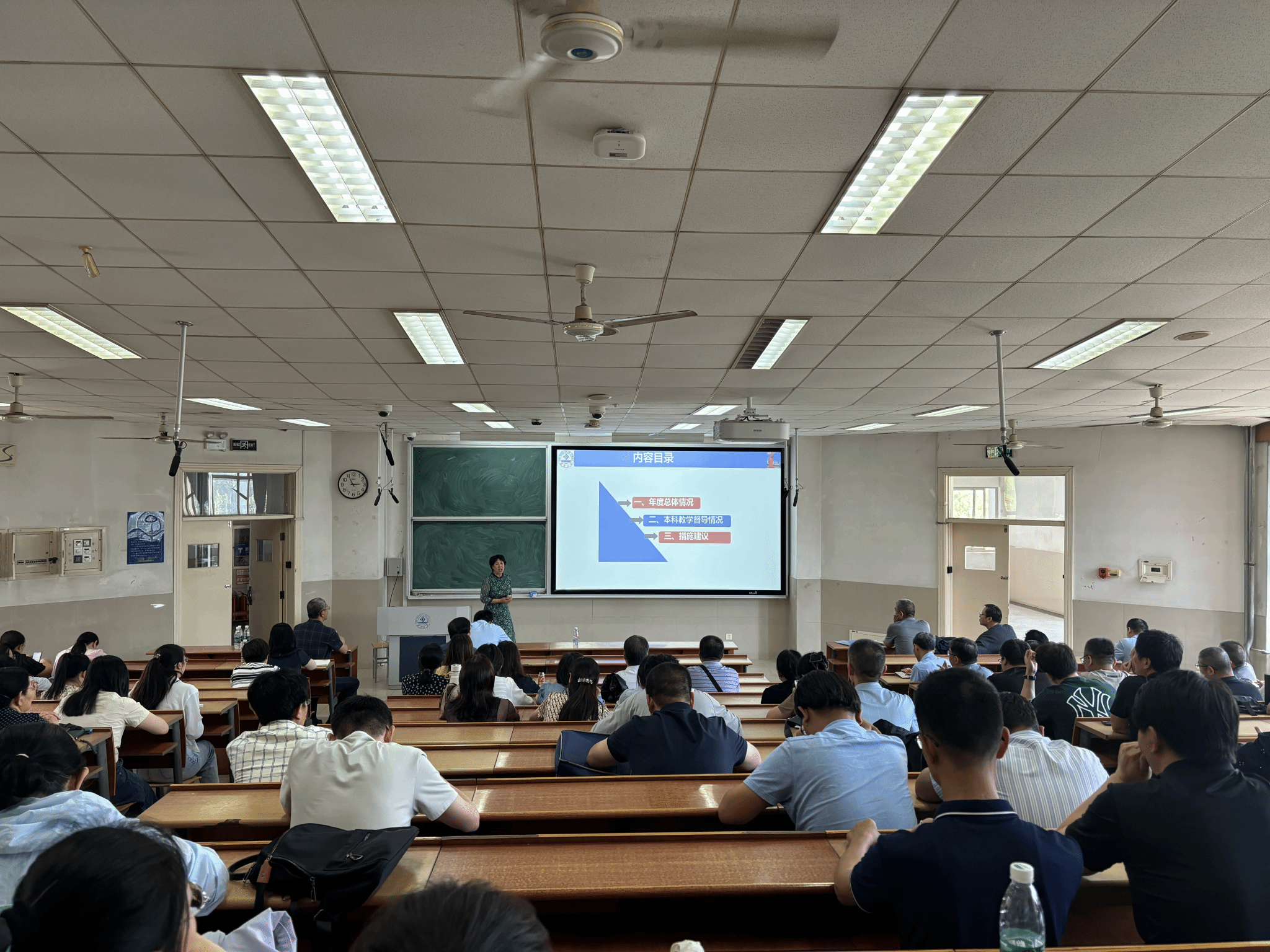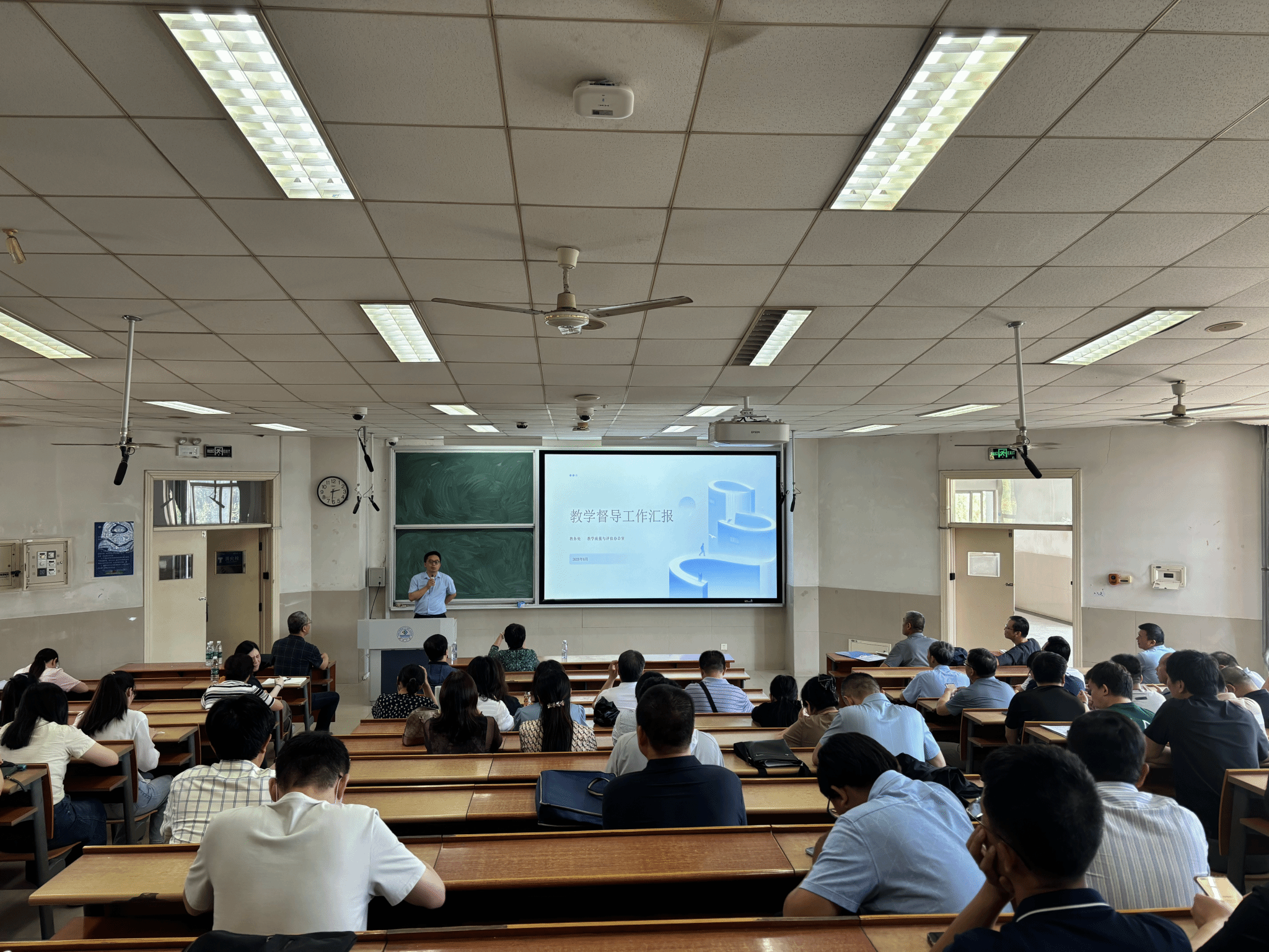 张杰对学校本科教学督导工作进行了介绍,通报了近期本科教学督导工作开展情况和提升教学质量的意见建议。他强调,教师应正确对待本科教学、明确基本底线规范、不断强化质量意识、持续提升教学能力,为本科教育的高质量发展奠定坚实基础。王元秀教授代表学校教学督导组,从“本科督导总体情况、本科教学督导情况、措施建议”三个方面进行了教学督导反馈,王教授详细阐释了教学督导员的工作要求与内容,梳理了2024年度督导工作的各项情况,对上学期和本学期的听课巡课、教学档案检查、实习实践基地等专项督导存在的问题进行了具体反馈。她明确指出,教学督导秉持 “以督促导、以导带督、督导结合、重在指导”的原则,建议教师们主动加强与教学督导的沟通交流,充分借助督导力量提升自身教学水平,并提出了一系列具有针对性的改进措施与建议。