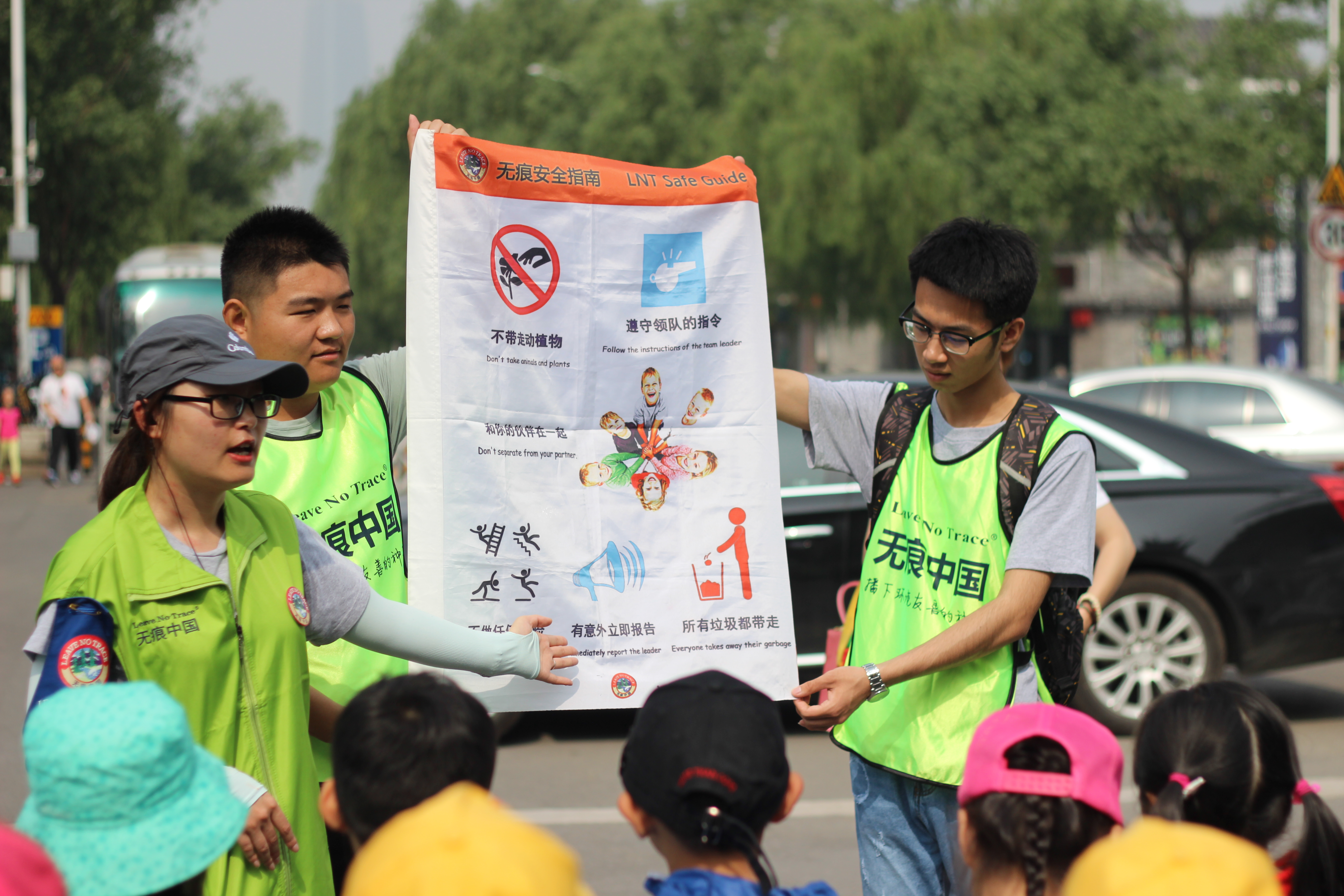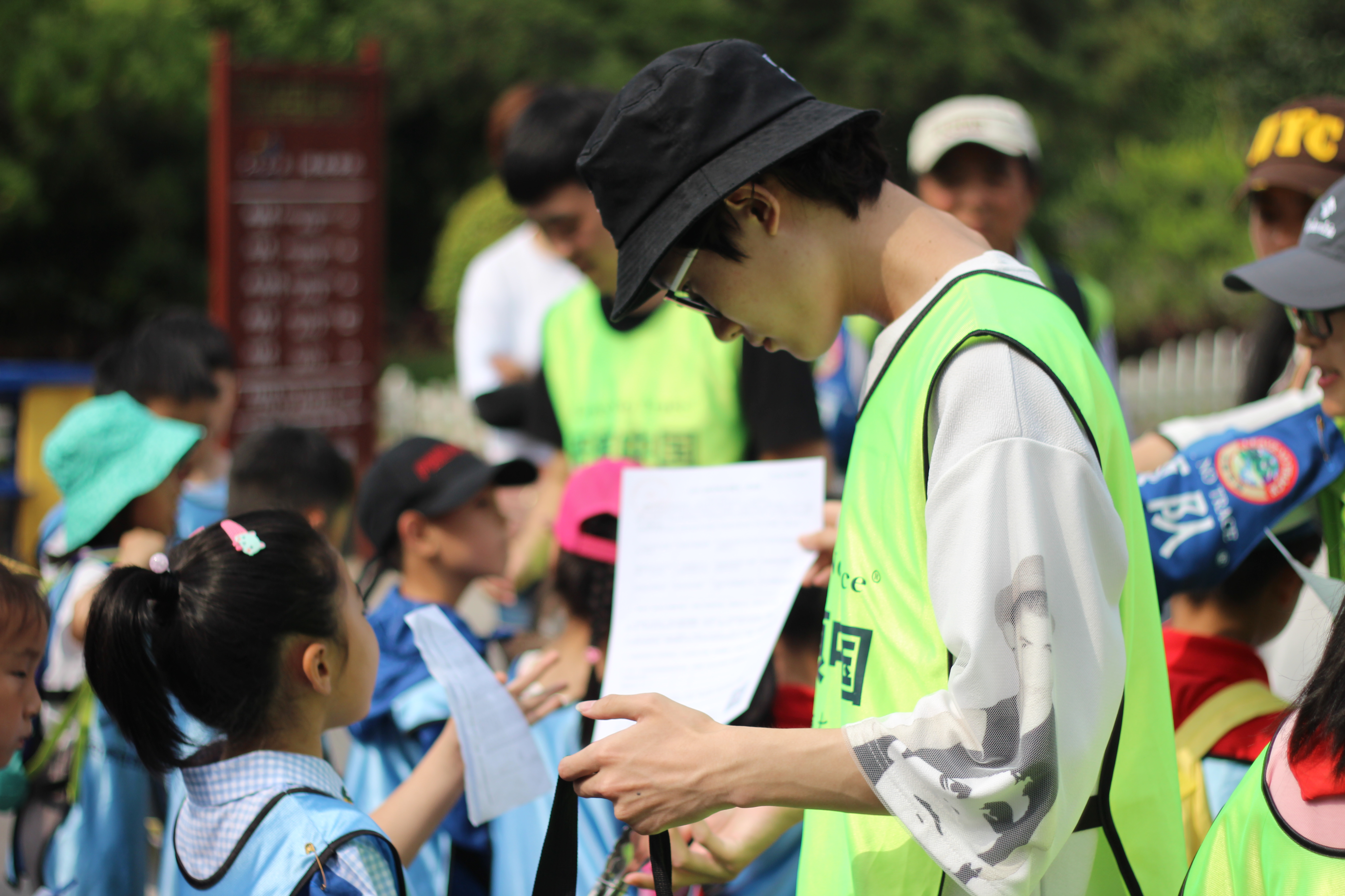 志愿者全部完成签到后,活动正式开始。首先由“无痕中国”的老师说明此次活动的安全注意事项,志愿者积极配合,用图例展示的方式形象地向小朋友们说明了重要事项。随后志愿者统一分发了环保工具和知识问卷,让小朋友们在环保的同时学习更多关于黑虎泉的知识。一路上,志愿者们一次次弯腰捡起游客留下的烟头、包装袋等垃圾,既清洁了黑虎泉附件过道的地面,又为小学生及过往的行人做出榜样,身着绿色外套的志愿者俨然成为了黑虎泉一道独特的风景线。接着到了金虎亭,做足功课的志愿者又为小朋友和过往的游客详细介绍了金虎亭的由来及构造特点。志愿者丰富的自然科学知识让小朋友们有了很多收获,更是让行人和工作人员拍手称赞。活动结束后,“无痕中国”的工作人员和志愿者集合在一起,交流并分享此次志愿服务的心得。
