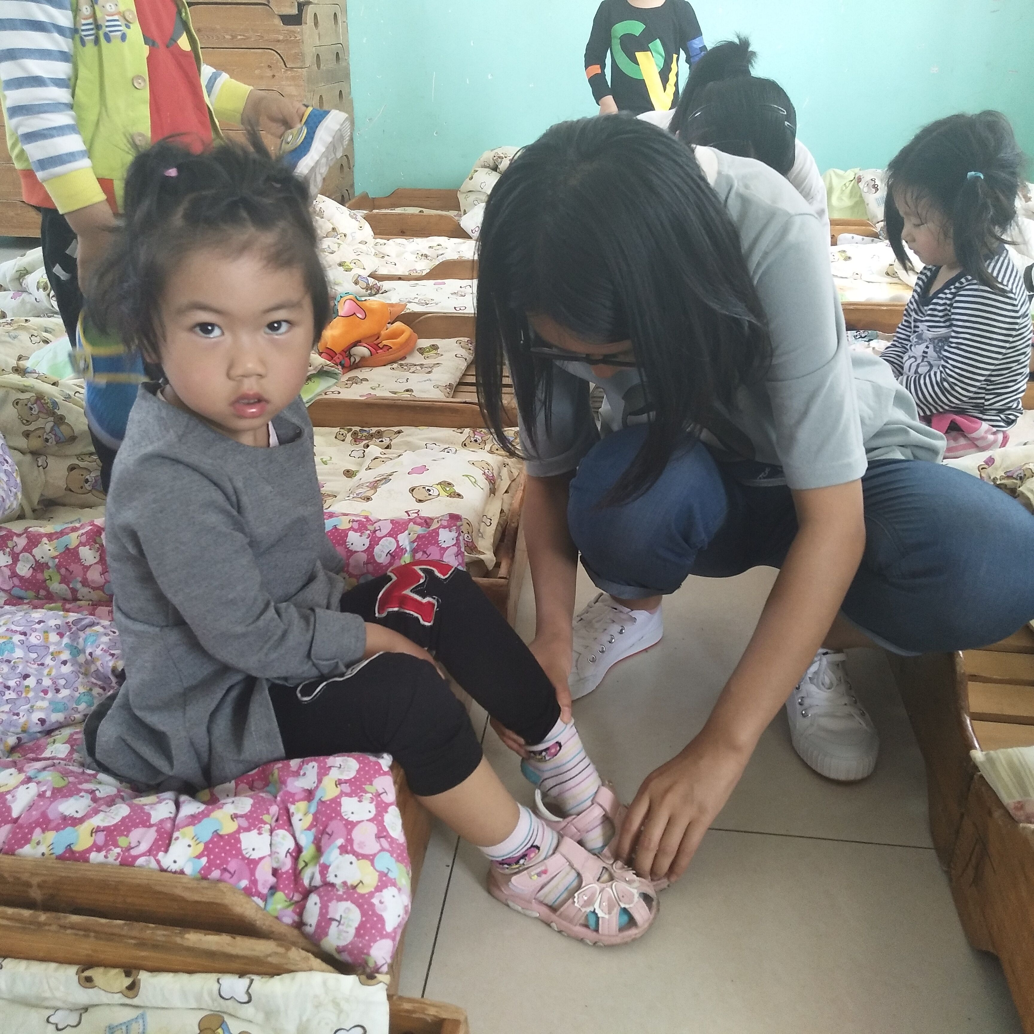 为了丰富大学生课外生活,增强大学生奉献精神和爱心意识,提高大学生社会服务意识,传承和发扬“奉献、友爱、互助、进步”的志愿精神。5月8日,kaiyun云开登录入口青年志愿者协会到后魏村幼儿园进行志愿活动。 13点50分,志愿者们到达了幼儿园。为了庆祝六一儿童节即将到来,大家分为两组进行志愿任务,一组为幼儿园进行墙壁涂鸦,另一组负责陪伴照顾小朋友。在小朋友们午休结束后,志愿者为他们穿衣服、整理床铺,搬桌椅、安排上课并陪小朋友做游戏,天气微热,小朋友们露出了一个个红扑扑的脸颊,却丝毫不减做游戏的快乐与热情。看到孩子们一张张笑脸,志愿者顿时被孩子们感染,感觉自己的志愿之行更有意义。接着,志愿者为小朋友们分发饭菜及水果,并组织小朋友吃晚饭,吃水果。在志愿者一下午的劳动后,原本单调的墙壁上多了各种各样的有趣图画。下午3点,志愿活动结束,志愿者们与孩子们依依不舍的告别。