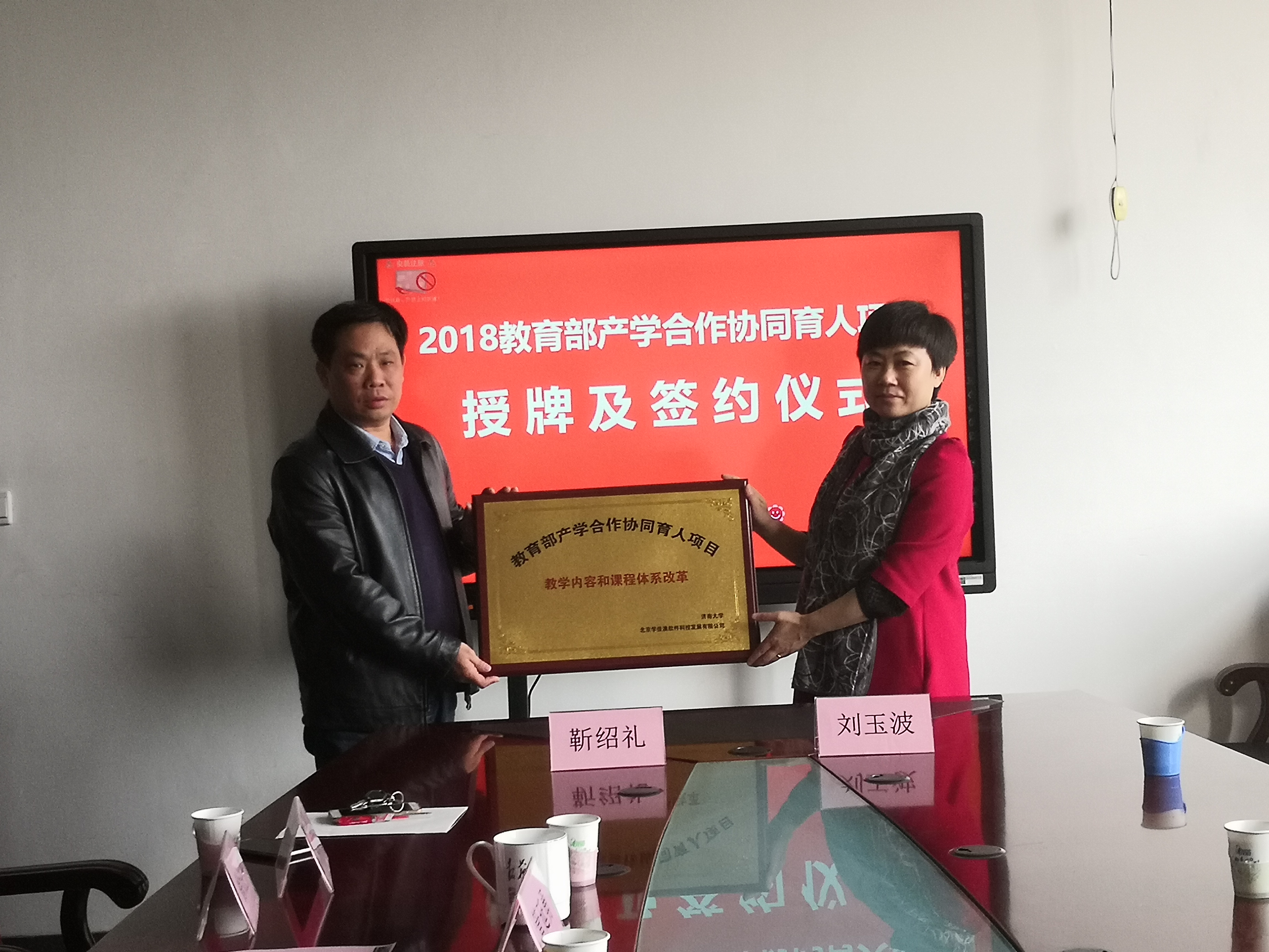 为推进高校人才培养进程,进一步推动kaiyun云开登录入口与北京学佳澳合作进程,3月22日,kaiyun云开登录入口与北京学佳澳软件科技发展有限公司正式启动教育部“产学合作协同育人”合作项目,在kaiyun云开登录入口开展了签约暨授牌活动。北京学佳澳软件科技发展有限公司校企合作总监刘玉波、校企合作经理陈芳、资深技术讲师吴松,kaiyun云开登录入口院长管延勇、副院长王纪辉参加签约暨授牌仪式。