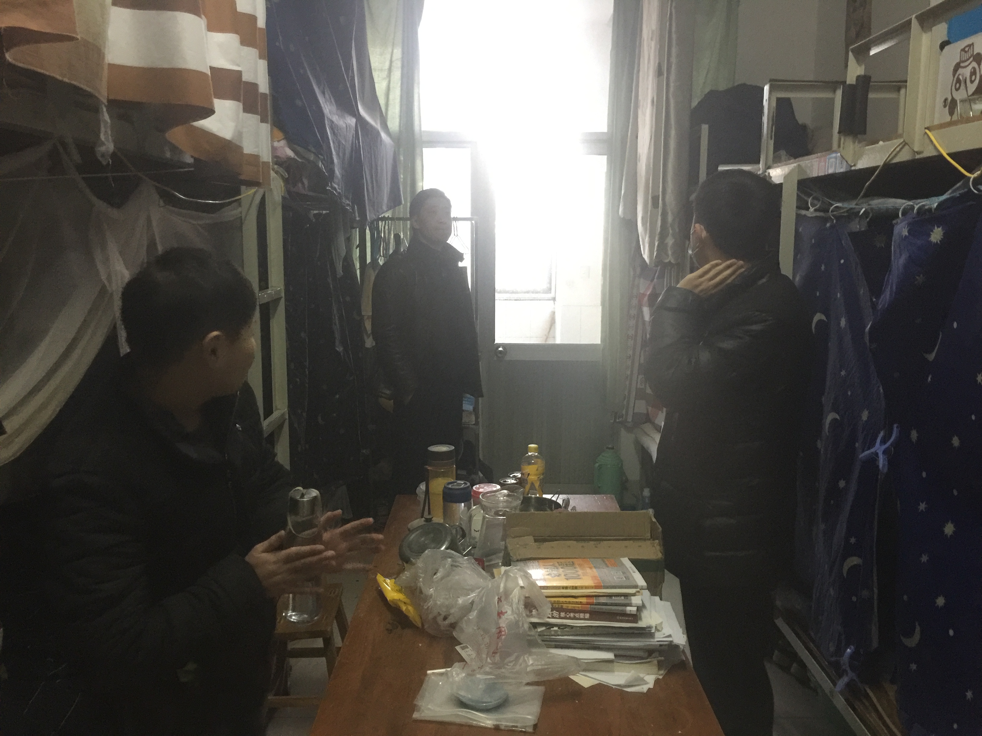 活动伊始,检查队伍重点走访了学23、27公寓。检查过程中,孟德洋书记与宿舍学生进行了亲切交流,他首先对学生们认真准备、积极打扫宿舍的态度表示了肯定,希望他们一定要严格执行校院两级卫生检查标准。针对部分宿舍出现的使用违规电器、随意拉扯电线等安全隐患问题,孟书记提出,安全问题无小事,同学们一定要足够重视,不能掉以轻心,特别是假期来临之际,一定要做宿舍好安全隐患的排查工作,不能出现任何安全问题。随后,各年级辅导员也深入到学生宿舍进行了安全卫生检查,针对宿舍存在的安全卫生问题提出了具体整改建议。