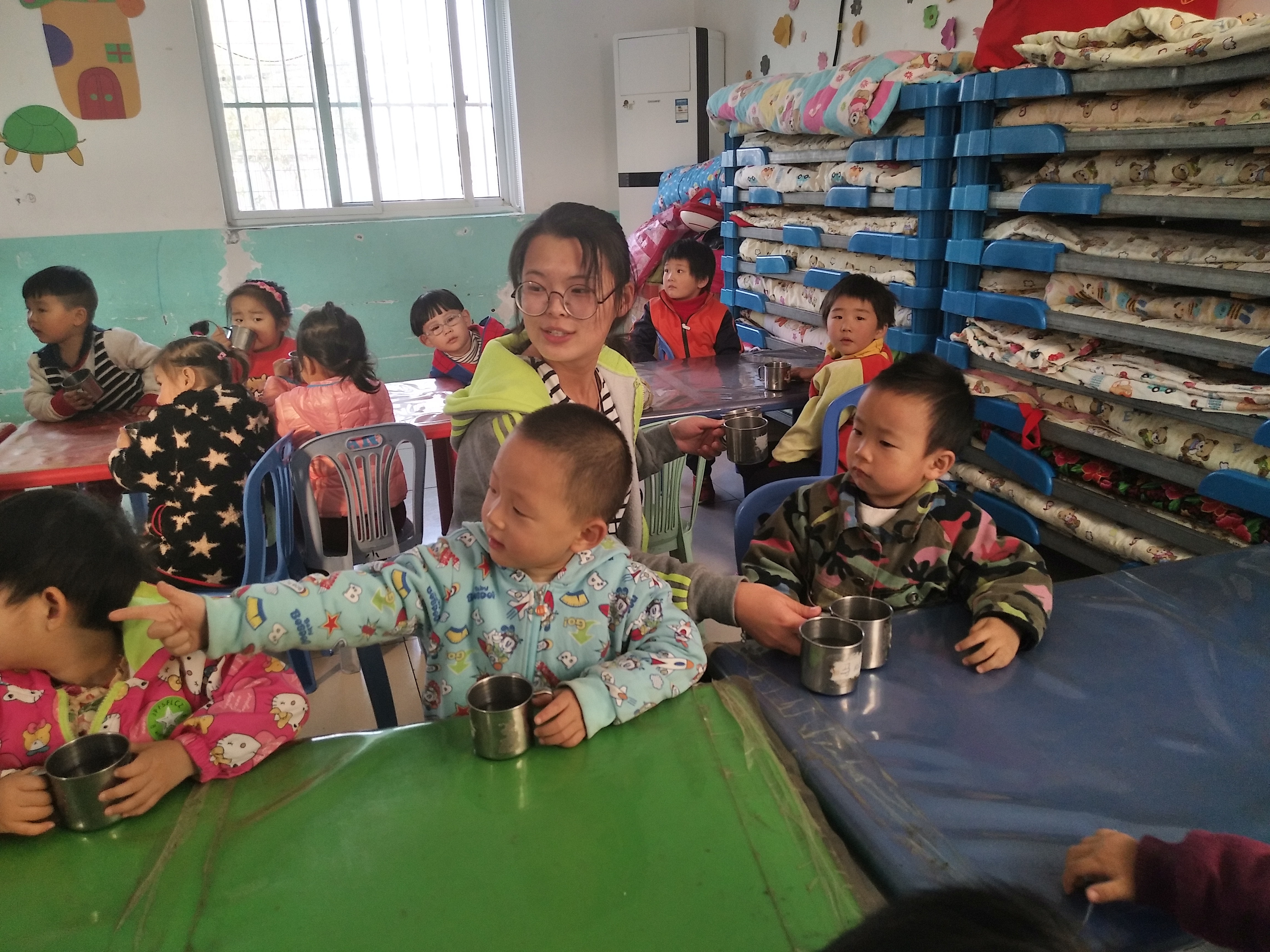 志愿者到达时,小朋友们正在午休,在耐心等待小朋友起床后,大家开始分工志愿任务,每人负责一个班,大家为小朋友叠被子,搬桌椅,安排上课。并陪小朋友做游戏,在看到小朋友们的一个个笑脸后,志愿者们顿时觉得自己的爱心得到了充分的回报。之后,志愿者为小朋友们读了故事书,一个个充满童趣的故事,使小朋友们陶醉在故事情节中,也拉近了志愿者和小朋友们的距离。课间,大家为小朋友们分发了水杯,并组织小朋友喝水。下午3点,志愿活动结束。