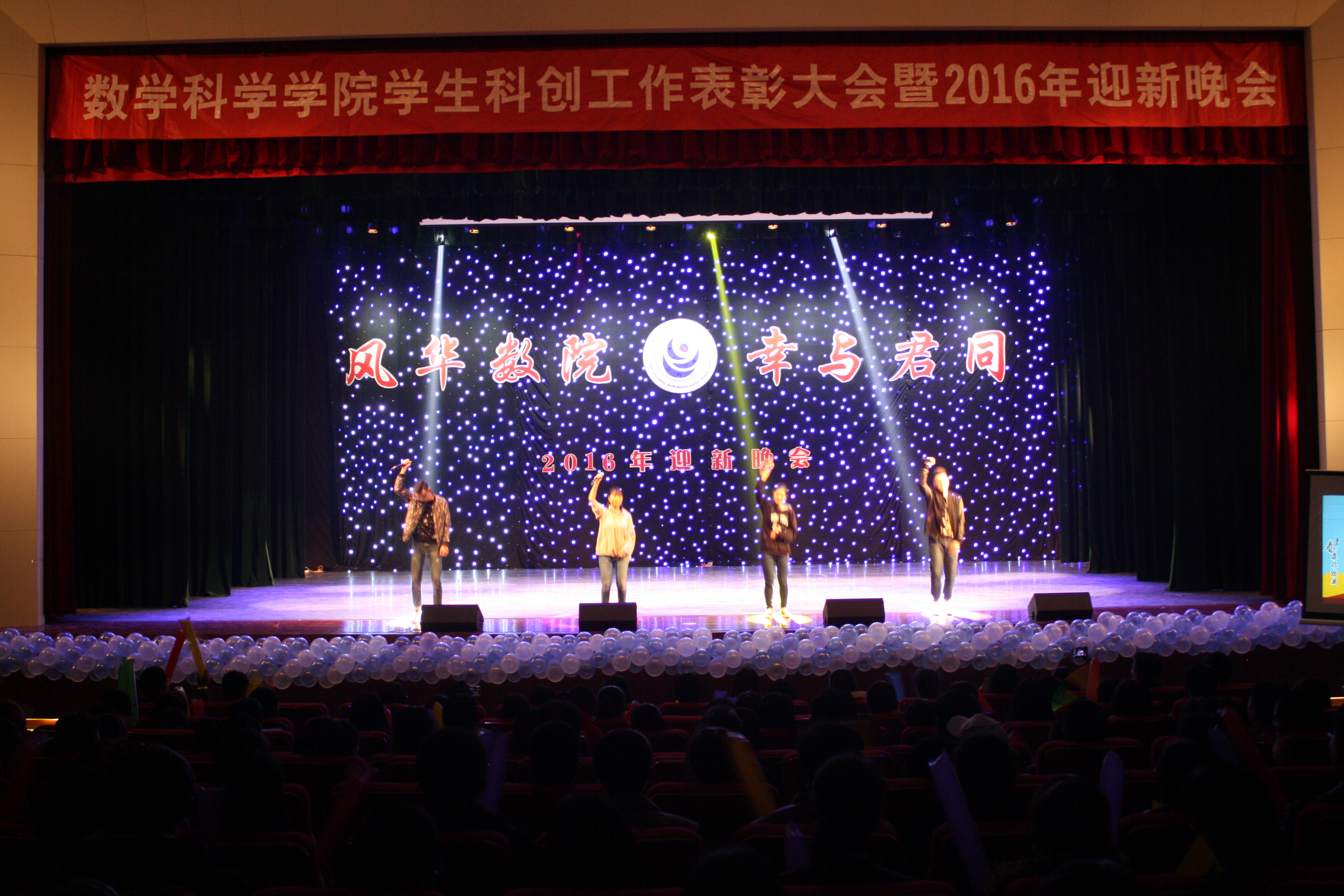 12月2日晚,kaiyun云开登录入口在主校区大礼堂举行学生科创工作表彰大会暨2016年迎新生联欢晚会。kaiyun云开登录入口党委常委、副校长张硕秋,副校长陈月辉,学生处长贾海宁,团委副书记胡春毅,部分学院师生,数学院全体领导以及部分师生出席晚会。颁奖会议结束后,举行了盛大的迎新生联欢晚会。