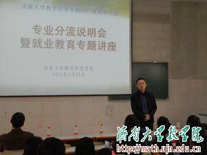 会议伊始,管延勇院长从各专业的学科特点、课程设置、专业性质及就业前景等方面进行了讲解。接下来,浪潮高级项目经理李晓辉和济南实验中学校长孙金葵分别就信息与计算科学和数学与应用数学两个专业向同学们做了详细介绍。李晓辉学长就目前IT行业的热门专业,前景与现状以及他的个人从业经历,目前毕业生就业时存在的部分常见问题与大家分享,现场不时博得同学们的阵阵掌声。接着,孙金葵校长就自己多年从事教育行业来的经历与体会,心得与大家进行交流,并提醒同学们要学好专业知识,脚踏实地,为将来就业打下坚实的基础。之后,老师与同学们进行了现场互动,为大家解疑答惑。两位老师都建议同学们要谨慎考虑,做好选择,明确自身的发展方向,并将对奋斗目标的期望划归为脚踏实地的行动。