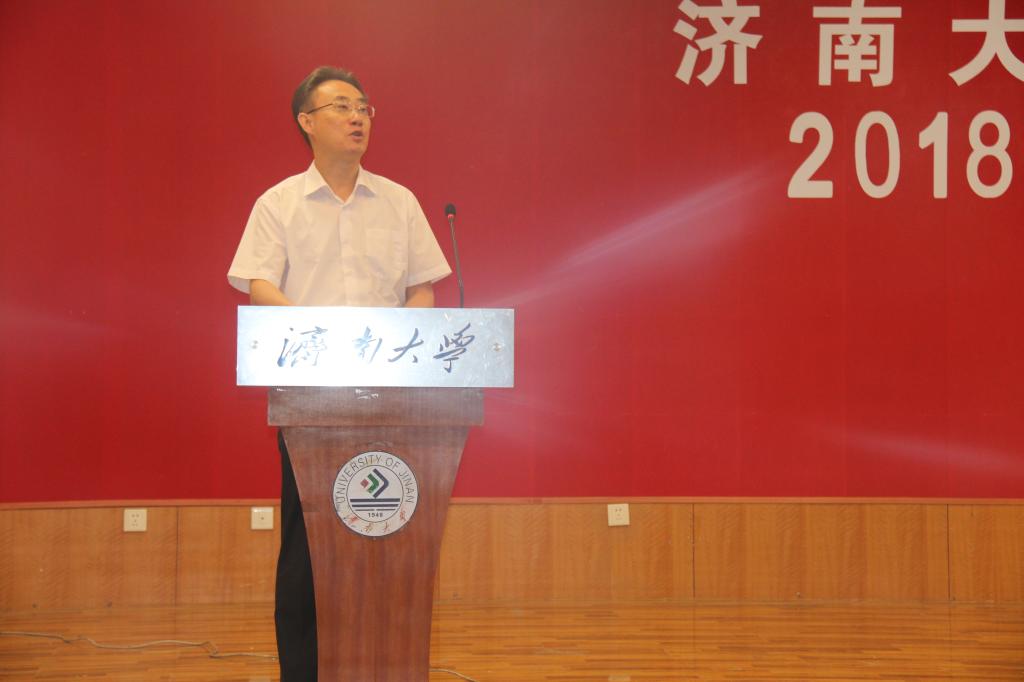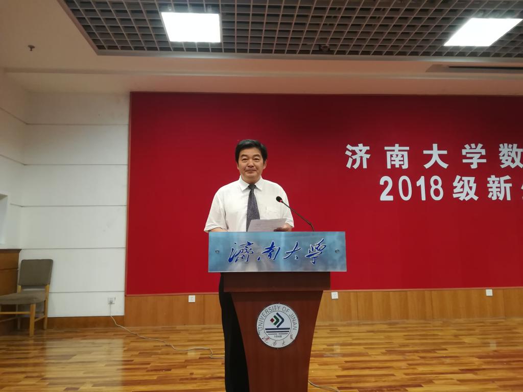 上午九时,典礼在庄严的国歌声中拉开帷幕。典礼上,管延勇院长致辞。他首先代表全院教职工对2018级新同学的到来表示热烈的欢迎和衷心的祝贺,并希望在济大数院的四年时光里,能够为同学们今后的发展增添上最浓墨重彩的一笔。随后,管院长从师资力量、教学成果、科研成果、所获荣誉等四个方面对学院的发展情况进行了详细介绍。