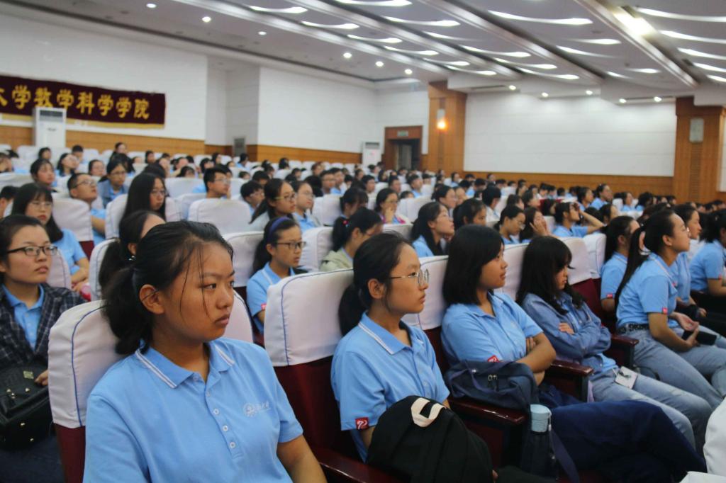 报告会伊始,管延勇院长以“大学是什么”为切入点,通过鲜明的事例,多方面对比论述了大学与中学的区别,并通过图片、视频等形式带领大家了解了牛津大学、剑桥大学等世界一流大学和中国第一所大学天津大学的发展历程,向新生们诠释了大学的功能、精神及文化内涵。随后,管院长向新生介绍了kaiyun云开登录入口的历史文化特色以及发展愿景,并重点介绍了kaiyun云开登录入口的专业发展现状及在国内外的地位。管院长结合学校“弘毅、博学、求真、至善”的校训,鼓舞新生自觉养成“勤学、修德、明辨、笃实”的品质,并以数院往届优秀毕业生为榜样,鼓舞新生“长江后浪推前浪”,呼吁新生们向往届优秀毕业学习高效、科学的学习方法,朝着更高的目标前进。最后,管院长强调了实践在收获知识、增长才干中的重要作用。他说,理论可以从书本中获得,但是人需要有精力通过实践去慢慢体会世界,像在座的各位需要慢慢的通过自身的成长去体会什么是真正的大学。