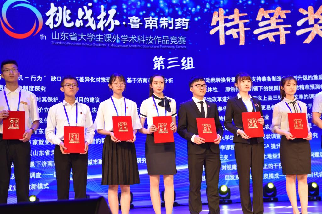 5月28日-30日,由共青团山东省委、山东省科学技术协会、山东省教育厅(省委教育工委)、山东省科学技术厅、山东省社会科学院、山东省学生联合会主办,齐鲁工业大学(山东省科学院)承办的第十六届“挑战杯”·鲁南制药山东省大学生课外学术科技作品竞赛终审决赛在齐鲁工业大学(山东省科学院)举办。学院参赛作品《当代在校大学生短期支教的现状调查与发展路径研究》,经过前期材料申报、网络评审、现场质询、问辩等环节,从众多参赛作品中脱颖而出,荣获山东省特等奖,取得入围国赛资格。