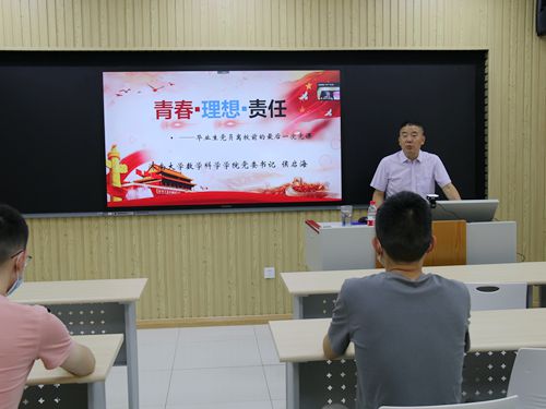 在中国共产党成立99周年之际,为了增强毕业生党员的责任意识、担当意识、奉献意识,做好学院毕业生党员离校前教育、管理和服务工作,引导广大党员在文明离校过程中发挥党员榜样示范作用,7月2日上午,学院召开以“青春·理想·责任”为主题的2020届毕业生党员线上专题教育活动。学院党委书记侯启海出席并为毕业生党员上了一堂生动的党课,学院全体毕业生党员参加会议,教育活动由kaiyun云开登录入口学生工作办公室主任屈昌雷主持。