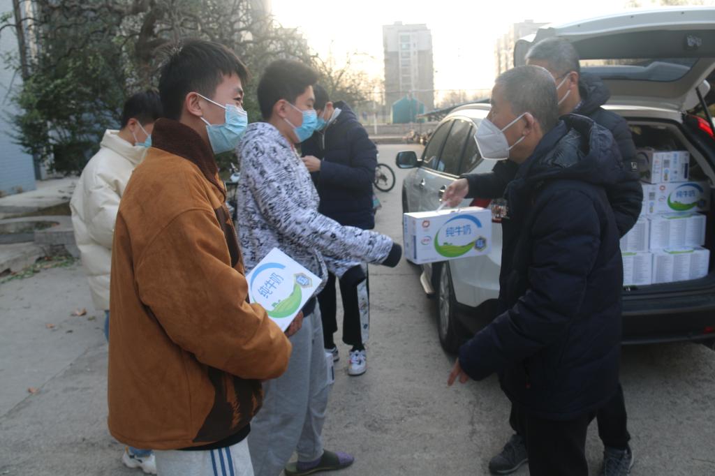 贴心关心关爱,共建温暖家园。为了配合学校做好疫情防控工作,切实保障全院师生的生命安全和身体健康,学院党委书记侯启海、学院院长孙元功带队,为全院在校学生发放了口罩、酒精等防疫物资,并时刻提醒同学们增强个人防护意识,保持良好卫生习惯;学院党委副书记张沂红带队为考研学生送去了牛奶等暖心食物,为所有坚持在考研路上的数院学子送去一份寒冬中的心灵关怀和真挚鼓励;学院辅导员、班主任为隔离学生以及特异体质学生送去了牛奶、水果、口罩等生活物资和防疫物品,全力保障他们的基本生活需求。