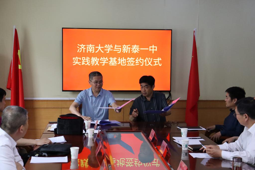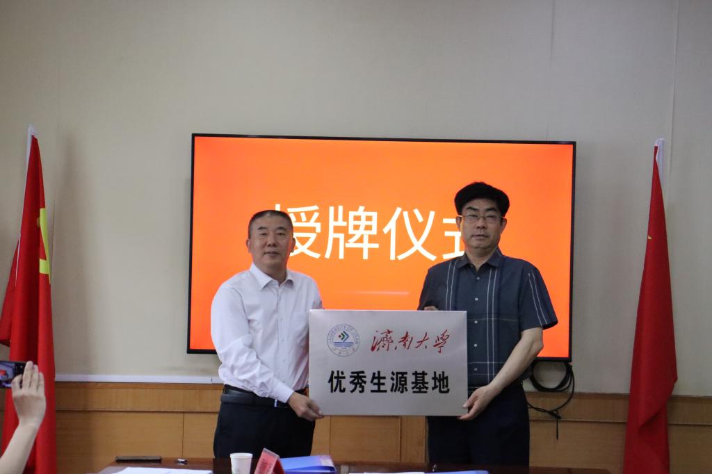 会上,kaiyun云开登录入口与新泰市第一中学签订了实践教学基地、就业实习基地,与新泰中学签订了优秀生源地、数学学科、思政学科共建合作协议,并举行了授牌仪式。