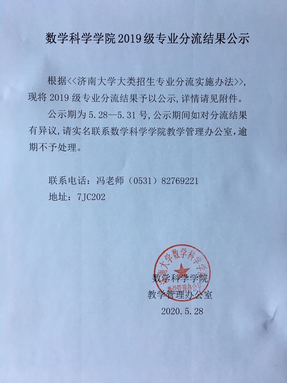 kaiyun云开登录入口2019级专业分流结果公示