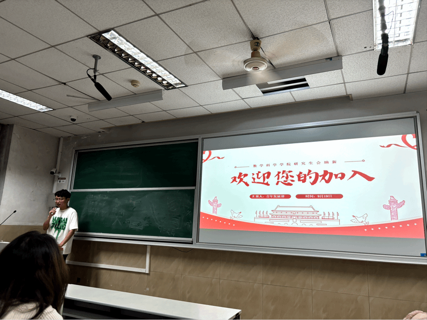 随着学生会纳新宣讲的圆满结束,研究生会纳新宣讲活动也于9月19日晚在第一教学楼203教室拉开帷幕。研究生会青年发展部、文体部、宣传部、学术创新部四部门代表依次上台,详细介绍了本部门的职能、特色活动以及加入后的收获。青年发展部展现出了维护学院纪律决心,确保公平公正,营造和谐有序的学习生活环境;文体部则通过精彩的视频和图片,回顾了过去举办的各类文艺演出以及体育赛事,让新生们感受到了校园文化的丰富多彩,鼓励同学们积极参与,强身健体;宣传部展示出的各类活动的宣传策划与执行,包括海报设计、新媒体运营、视频制作等,用创意和才华展现了学院风采;学术创新部则是通过举办的学术研究与交流会,学术讲座、研讨会、论文竞赛等活动,让同学们了解学术部,憧憬学术部。各部门代表不仅介绍了部门工作,还分享了自己在研会的成长经历和感悟。他们用真诚的话语表达了对研究生会工作的热爱和对新成员的期待,让新生们深刻感受到研究生会是一个温暖、团结且充满机遇的地方。在提问环节,新生们积极踊跃,就自己关心的问题进行提问。各部门代表耐心解答,为新生们消除疑虑,进一步激发了他们加入的热情。