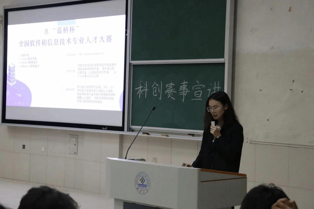 数院新生欢聚一堂,在徐靖瑄的带领下共同深入了解科技创新赛事。徐靖瑄首先向大家介绍了“国创”、“省创”与“校创”相关的计划来鼓励学生积极参与,提升大学生的创新精神、创业意识和创新创业能力。其次分别向大家介绍了“电工杯”、“高教社杯”、“中国国际大学生创新大赛”、“大挑”、“小挑”、“全国大学生数学竞赛工行杯”、“蓝桥杯”、山东省师范类高校学生从业技能大赛等赛事,细致讲解了不同赛事的参赛时间、报名网站、参赛条件、论文要求等,帮助同学们更好地了解各项赛事的具体赛程,形成对科创竞赛体系的整体把握,并倡议大家积极参与科创赛事,以赛促学,搭建知识理论和科学实践相辅相成的桥梁。紧接着映入眼帘的是一段视频,视频中专家的指导以及幽默的形象紧紧吸引大家的关注,他们以生动的语言不断向学生们普及科创知识,切实激发了新生们参与科创赛事的兴趣和热情。