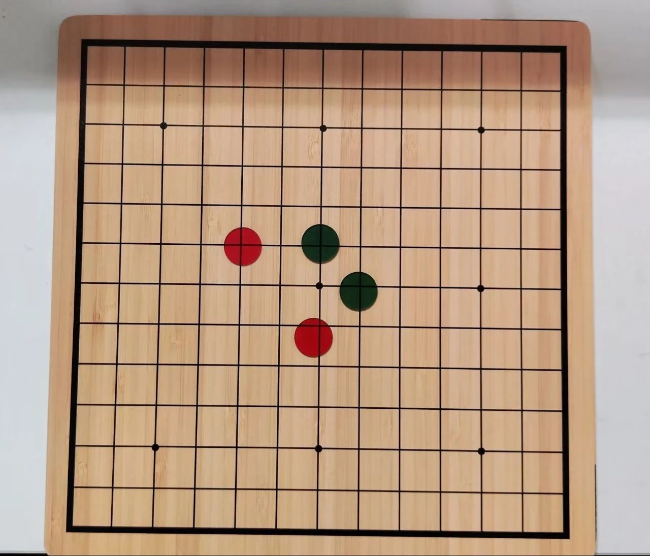 04五子乾坤 棋盘诡谲,五子乾坤。黑、白双方在棋盘上各下一步棋,最终在行、或列、亦或对角方向呈五个连在一起即获胜。
