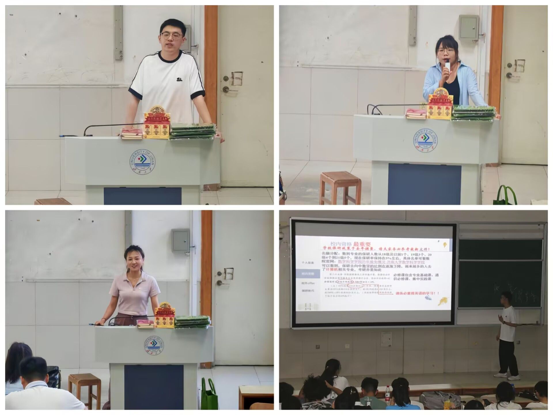 本次分享会邀请学院三位优秀学生代表及资深留学顾问张老师,围绕考研、保研、出国三个升学方向为同学们带来一场精彩纷呈的经验分享。分享会上,考研代表庞诗卉以自身从大一大二筑基到大三冲刺的备考历程为引,细致分享时间管理、资料筛选等实战心得,鼓励同学们坚定信心,持之以恒;赵骞飞则通过推荐实用考研资源、解读教辅使用方法及推荐公众号等方式,传递坚持精神。随后保研学长周文杰详细介绍保研的基本流程、所需材料以及个人经验,强调学术成绩、科研经历和社会实践在保研中的重要性。最后,留学顾问张老师则从留学学校选择、申请流程、材料准备及面试技巧等方面进行了详细介绍,助力同学们拓宽国际视野,明晰多元升学路径。