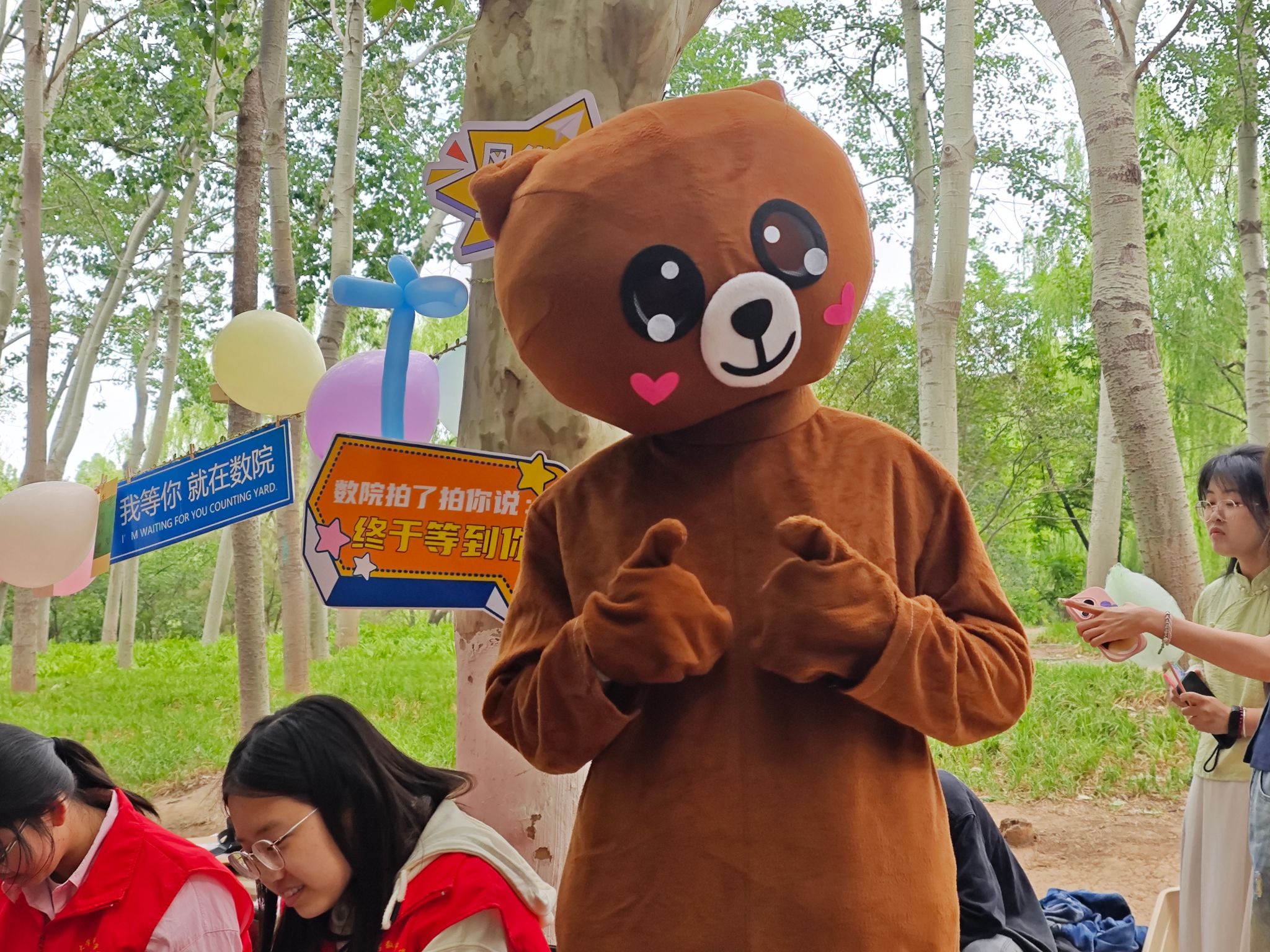 活动现场,彩色气球与趣味标语相映成趣,“我等你,就在数院”等字样传递着温暖与期待。超30项创意活动精彩纷呈,游戏挑战区,同学们全神贯注沉浸于思维与技巧的碰撞;OH卡牌体验区,一个个神秘的卡牌故事引领着同学们探索内心世界;棉花糖DIY台前,甜蜜的香气带领大家重拾儿时的纯真与快乐。志愿者们热情似火、耐心引导,可爱的玩偶在人群中穿梭互动,欢声笑语此起彼伏。集章套圈环节惊喜不断,同学们凭借智慧与运气纷纷收获精美礼品,整个现场沉浸在欢乐的氛围中。