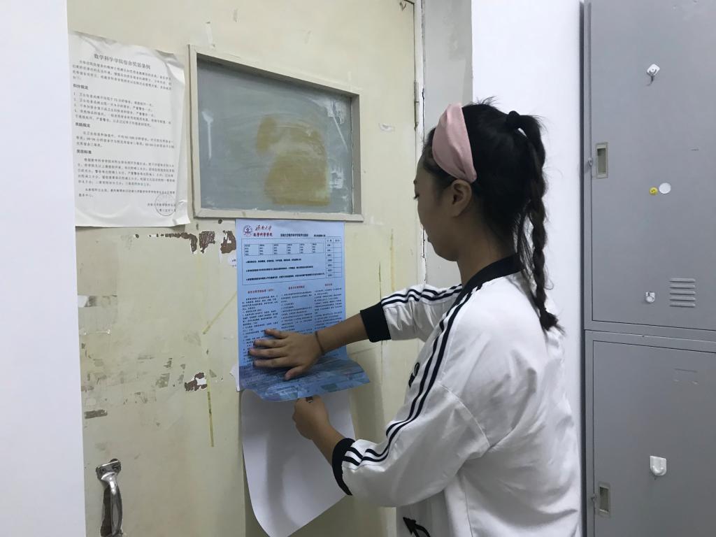 为了营造和谐美好的宿舍环境,给新生们提供干净舒适的住宿场所,2018年9月3日晚上7点半,kaiyun云开登录入口社管部工作人员和部分17级同学来到学生宿舍27号楼和32号楼,对新生宿舍进行卫生的打扫和门贴的张贴。