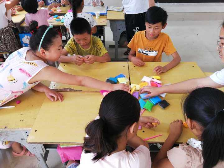 上课前,老师在教室里为孩子们分好组,当上课铃声响起,志愿者们抱着一袋袋太空泥走进教室时,孩子们欢呼雀跃,在座位上焦急的等待着太空泥的分发。志愿者首先对太空泥的使用进行了一番详细的讲解,孩子们便迫不及待的大显身手了。一团团太空泥在孩子们的手中变换着、创作着,这是一种最能锻炼孩子动脑能力的创作方式,同时也是一种促进孩子们交流合作的方式。孩子们通过交流、讨论、评价等过程,将心中美好的事物以立体的形象展现出来,用自己的小手捏制出一个个栩栩如生的作品,创造出一个缤纷的太空泥小世界。