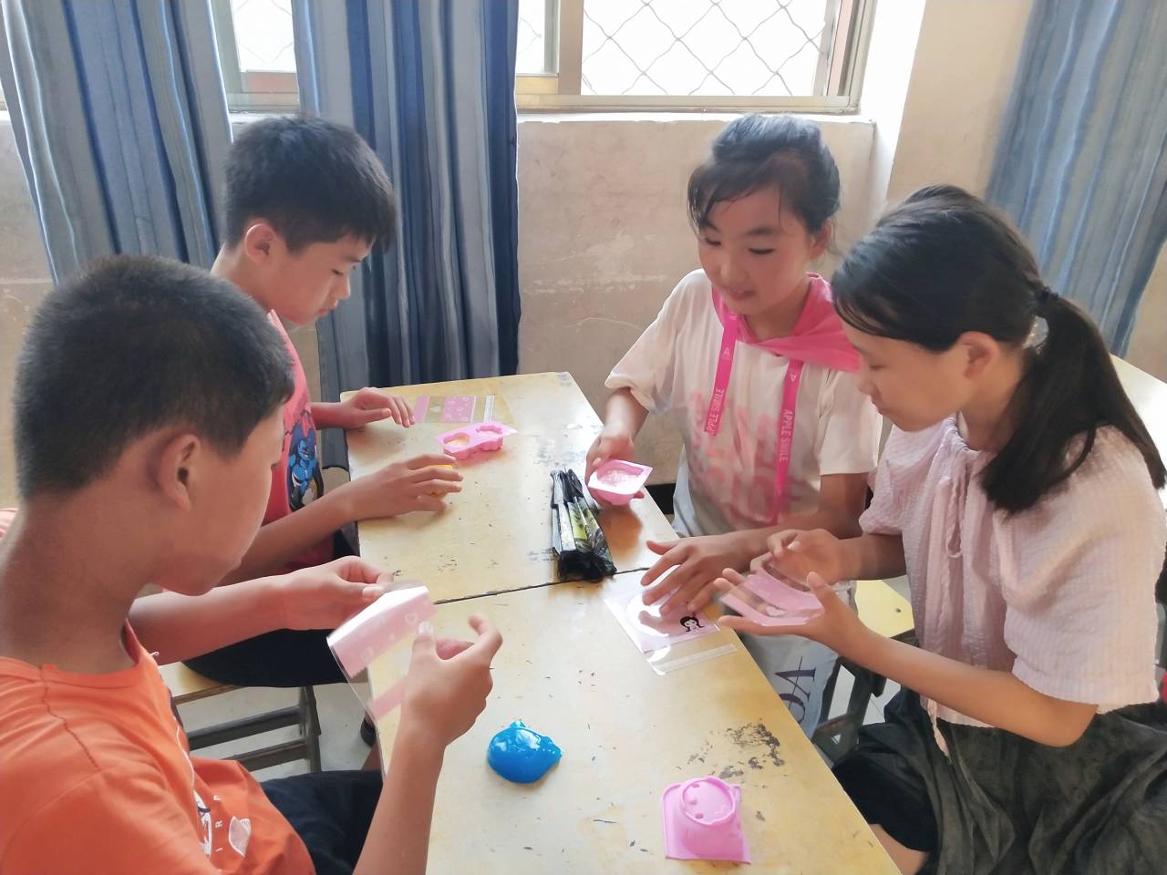 为了让孩子们了解更多新鲜事物,提高自己的思考能力和动手能力,7月28日,朱集镇郭楼小学小荷学堂的志愿者们带领孩子们动手制作手工皂。