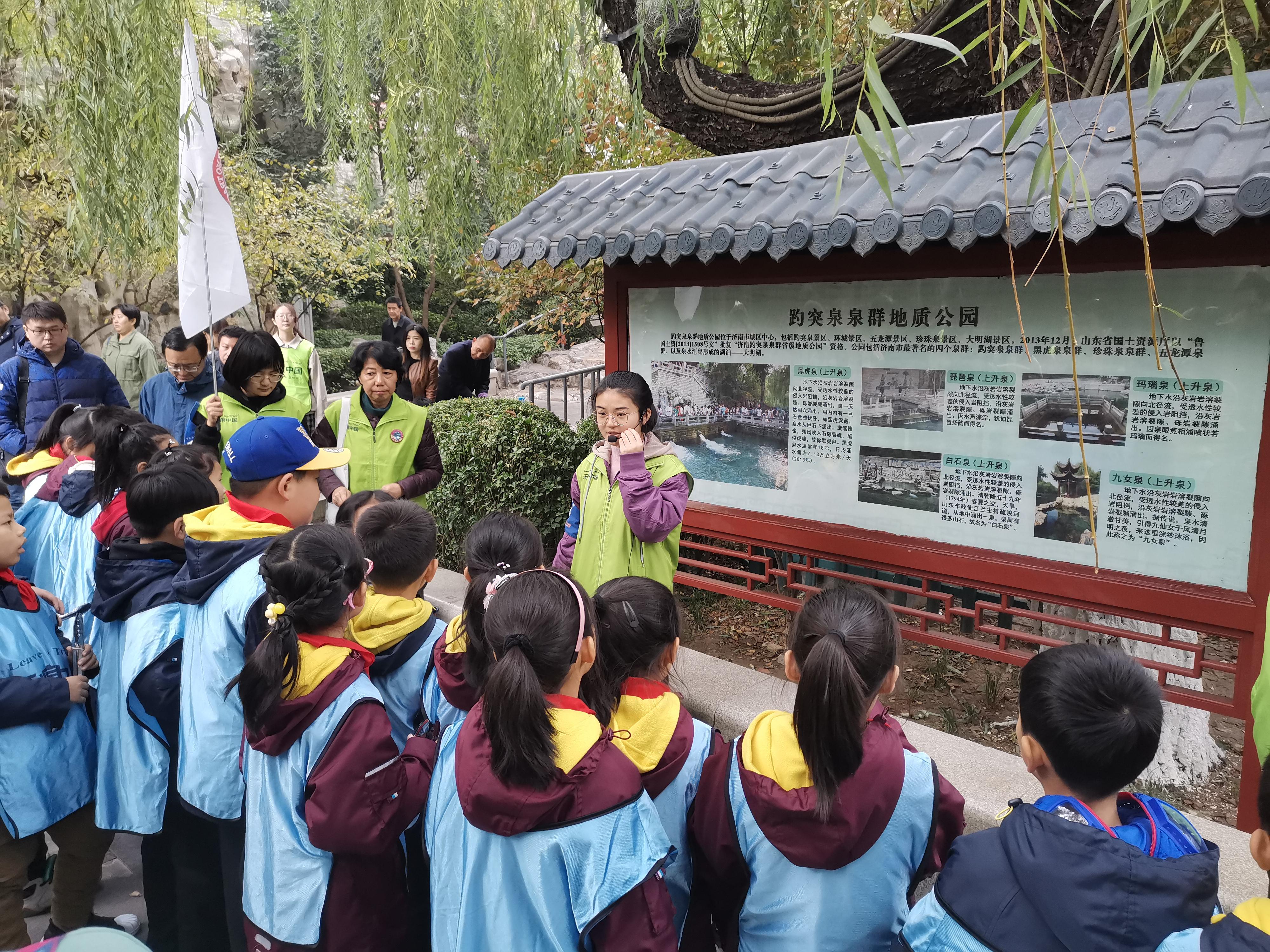 活动伊始,由“蒲公英”老师向小朋友们讲解了活动路线、注意事项,以及联系暗语。老师们向小朋友们重点强调到,在举行活动的同时应该保证不影响其他人欣赏黑虎泉的风景。第一个地点在黑虎广场,由“兔子”老师向大家讲解黑虎泉的来历以及与济南市的渊源,让我们感到济南市浓厚的文化韵味。接着,在碧筒饮由“羚羊”老师给大家讲解碧筒饮的由来,听着老师的讲解,让我们仿佛再次回到宋代,感受古人无与伦比的聪明才智。随后在地质广场,由“芒果”老师给大家讲解济南的地质构造。活动最后,队伍又回到了集合地点,无痕团队向优秀志愿者颁奖,以资鼓励,团队的老师们指出了我们所做的的不足之处和可取之处,大家分享了各自的经验。在一片讨论中,志愿者们圆满结束了今天的志愿任务。