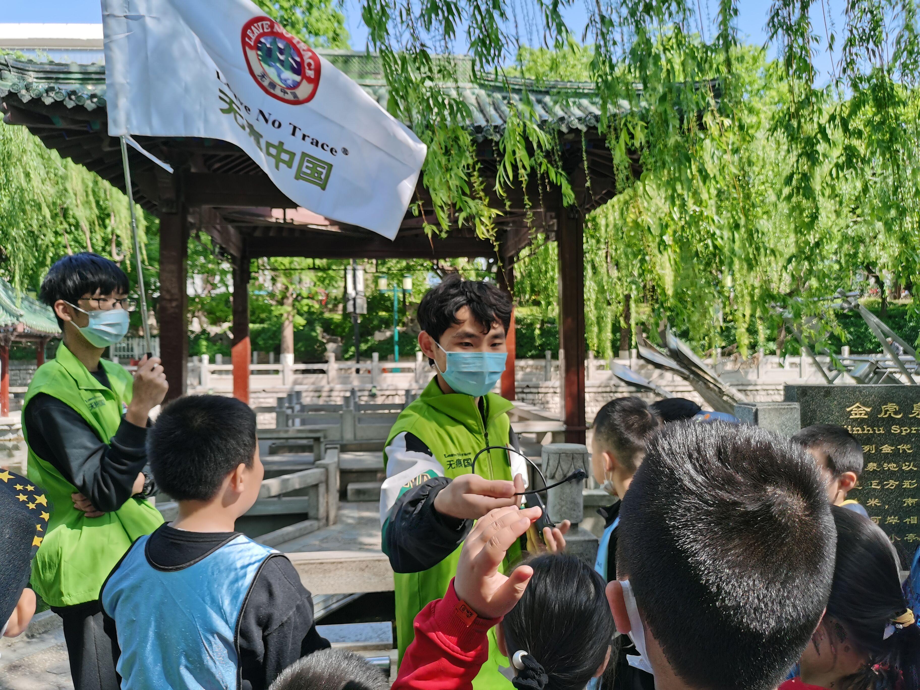 为增强大学生社会实践能力,宣传保护环境,从现在做起,从小事做起的环保理念,kaiyun云开登录入口青年志愿者协会与趵突泉小学2019级2班的小朋友们于4月17日9:00在济南市黑虎泉景区组织了“无痕”环境教育活动。在此次活动中,志愿者们摇身一变,成为了为小朋友耐心讲解的小讲师。