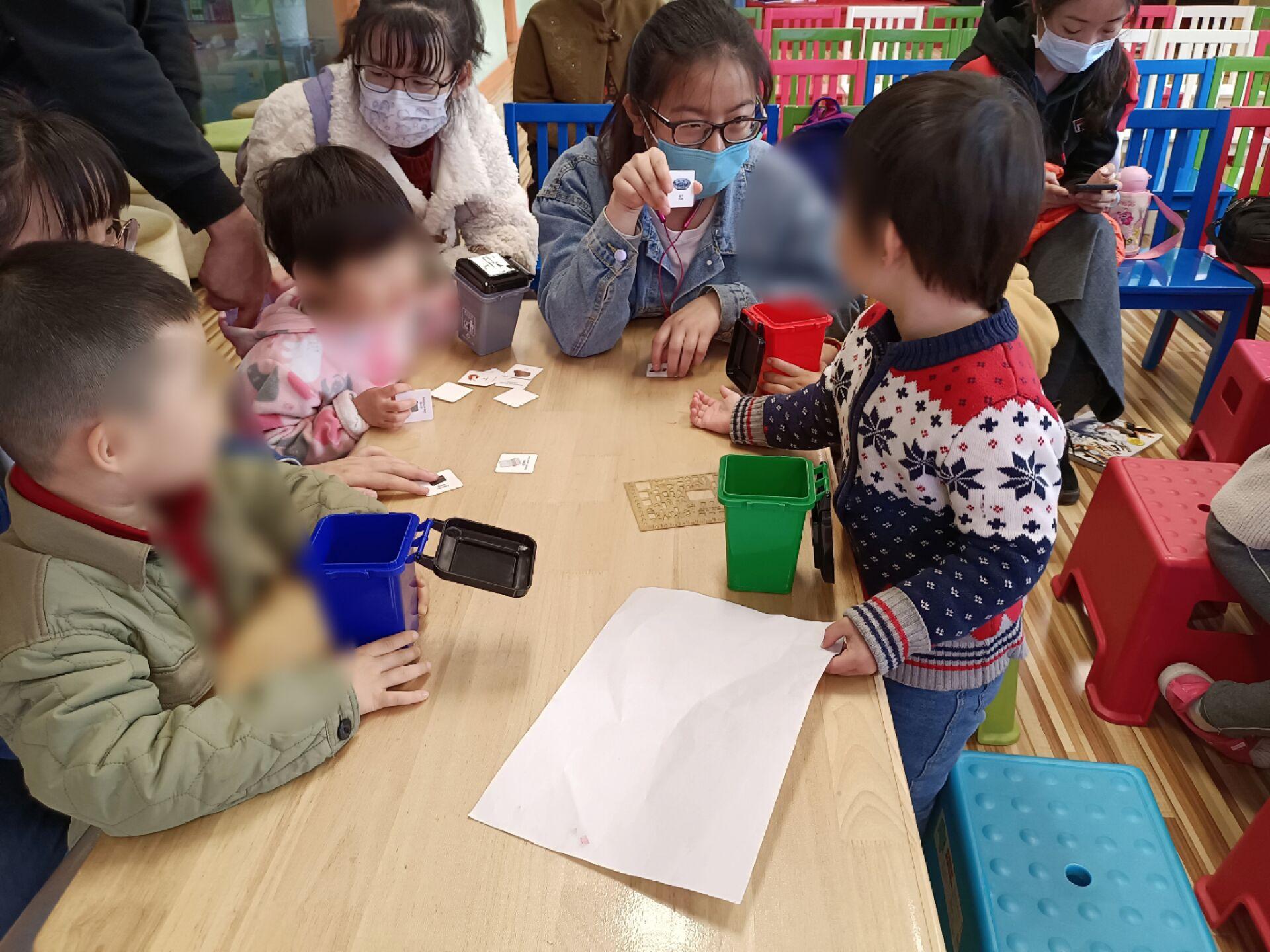 活动伊始,志愿者们带领小朋友有序就座,家长们坐在小朋友们的身后。志愿者王怡轩同学在讲解过程中,小朋友们认真听讲,主动提出问题,积极参与课堂互动,热情高涨。通过这个讲解,小朋友们不仅在学习环保知识的同时获得了乐趣,而且通过参与小组交流交到了好朋友,活动中家长们也积极主动地参与。活动进行到"讲师提问,小朋友回答"的最后环节,每一位小朋友都主动举手发言,他们的回答都精妙绝伦,语句生动,知识点都能够很好的掌握,也能够清楚的说出垃圾分哪几类等问题。经过此次"垃圾分类"知识的讲解,相信很多小朋友以及家长们都能够初步掌握一些关于垃圾分类的知识,同时也能将垃圾分类由理念转变为实践。