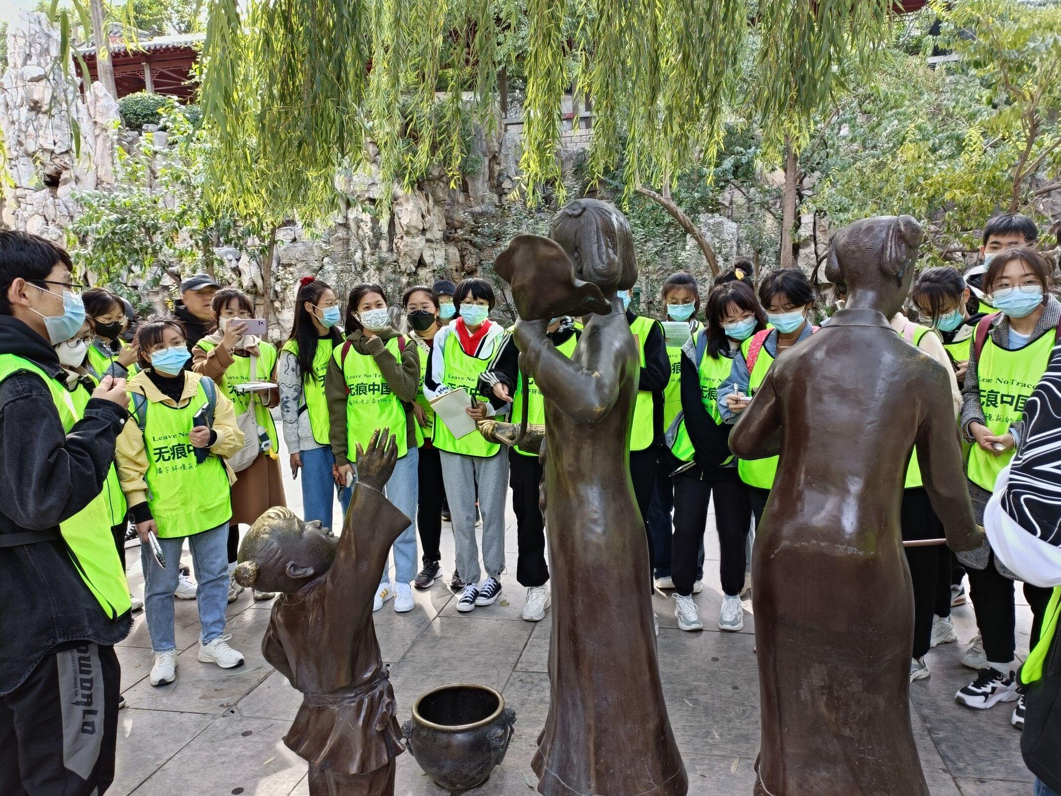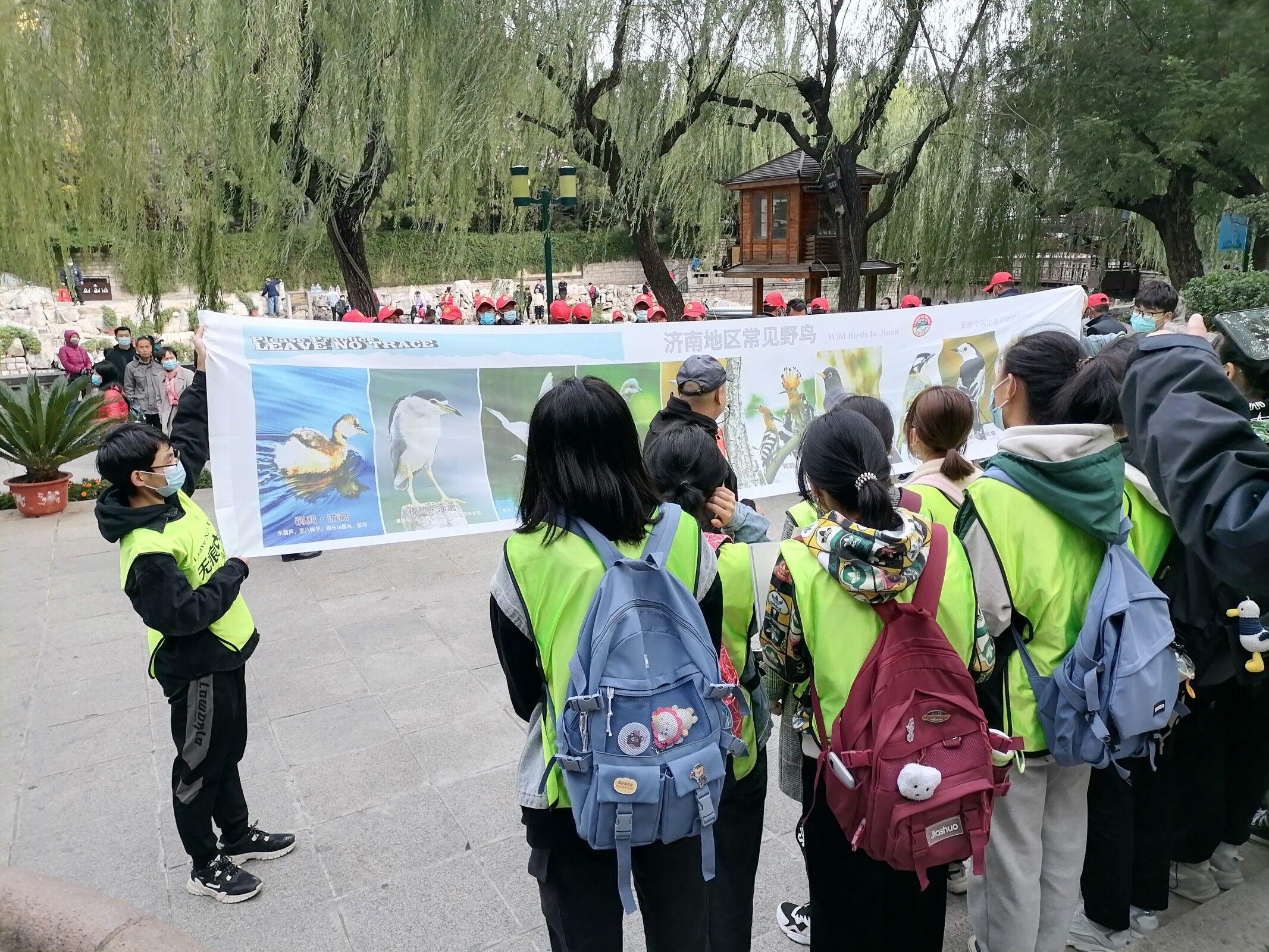 首先,无痕讲师栗子给志愿者们分发了“无痕中国”马甲和专用的垃圾夹,然后带领志愿者游览白石泉、玛瑙泉。在兽虎石雕前,无痕讲师大麦以济南的市花、市树、市鸟作为切入点,为志愿者介绍了猫头鹰、夜鹭、白鹭等济南野生鸟类,激发了大家学习关于鸟类知识的兴趣,让大家更加了解了济南的野生动植物。随后,青年志愿者协会的河豚老师付鹏介绍了“碧筒饮”中两个女子的服饰、发髻,借此推断出碧筒饮盛行的时间,在过程中志愿者们也体会到了“酒味杂莲气,香冷胜于水”的美妙感觉。接着,青年志愿者协会的西瓜老师耿晓双邀请男女两名志愿者模拟泰山丘陵到济北平原的地势地形,介绍了济南“泉城”的来历,志愿者们从中体会到了大自然的魔力。在这次培训过程中,青年志愿者协会的新生认真学习,积极表现,为日后开展志愿活动打下了坚实的基础。