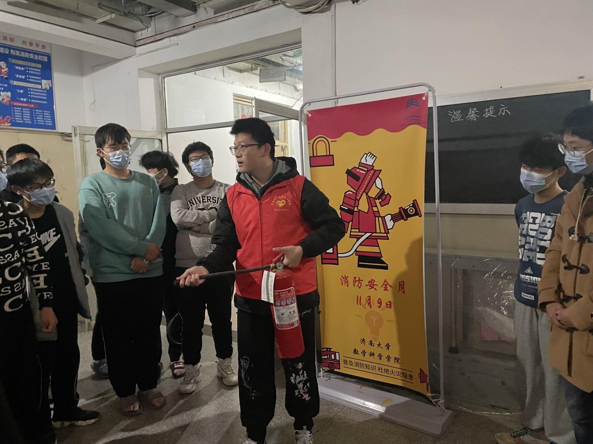 活动开始之前,青协志愿者们来到学27宿舍楼门口分配任务。然后分别前往一楼大厅和四楼楼梯口进行消防安全宣讲。讲师结合一些真实火灾案例,从消防安全常识、火灾的预防和扑救、火场逃生、消防器材的使用四个方面进行了深入浅出的讲解。对于同学们的问题,讲师用通俗易懂的语言给他们作了解答。讲师重点向同学们介绍了灭火器的分类、适用范围等,并使用灭火器进行演示,让他们了解消防器材的选择及使用。在天气比较寒冷的条件下,同学们听得非常认真,并积极回答问题,与讲师互动,讲师们的表现也十分出色,讲述既生动又形象,不时来回走动,努力照顾到每位同学,在场的同学们都受益匪浅。
