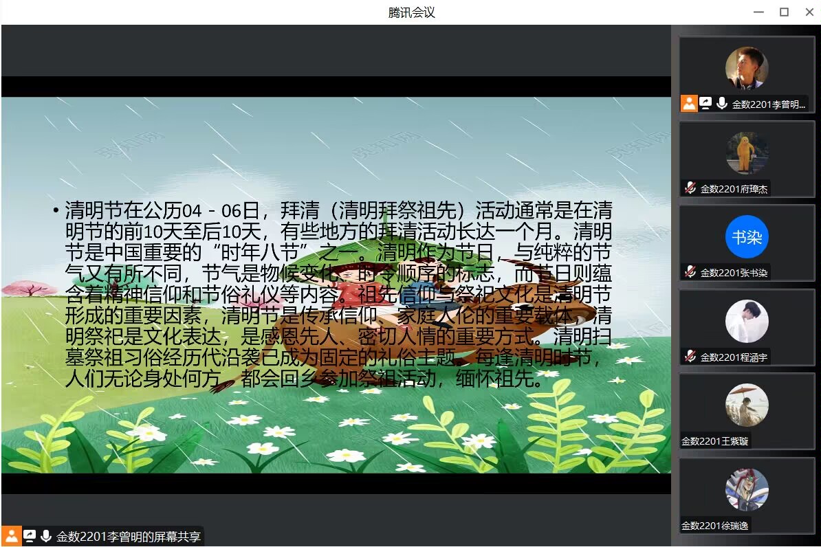 清明节是中华民族传统节日,是人们祭祀祖先、缅怀先烈的重要节日之一。为了缅怀革命先烈,深化感恩教育,激发学生的爱国主义情怀,传承先烈们艰苦创业、奋斗不息的精神,kaiyun云开登录入口于4月3日、4月4日开展了“缅怀先烈,牢记历史”清明节主题班会。