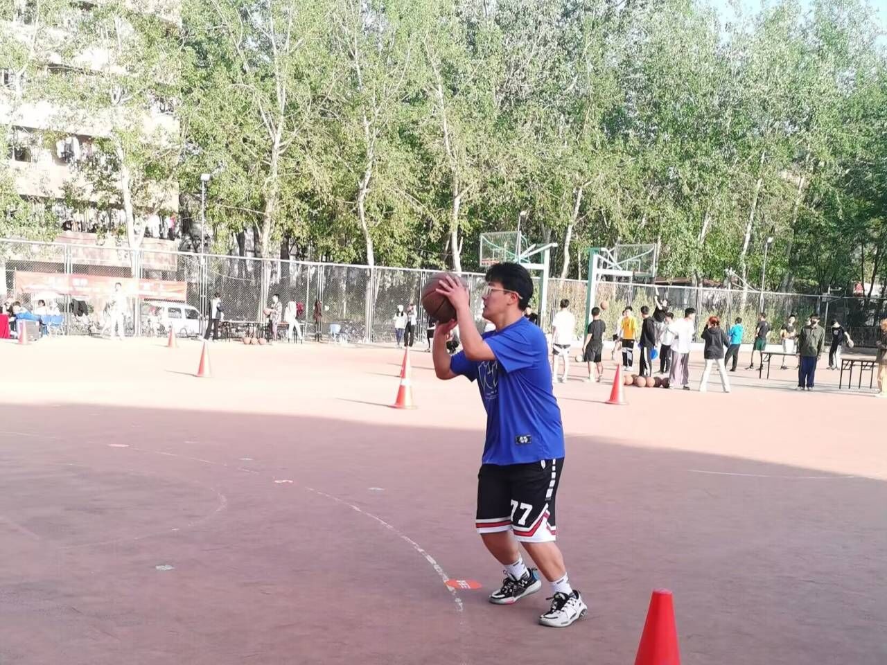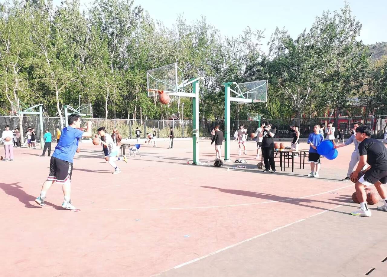 伴随裁判员的一声哨响,比赛拉开了帷幕。本次比赛分为三个环节。第一环节为三分球大赛,球员们需在五个位置进行三分钟定点投篮。球员们在激烈的三分钟内紧盯球框,奋力一跃,手中的篮球在空中划出一条条利落的弧线,赢得场下观众的阵阵喝彩,不仅增强了队员的信心还激发了他们的潜力。第二环节为篮球技巧挑战赛,球员们需穿过障碍物将球传入桶中,然后进行三分钟投篮并返回远场地进行上篮,用时最少者胜。此环节全面地考察球员们运球、传球、投篮等篮球技能的掌握水平,失误越少越能获得最后的胜利。第三环节为友谊赛,双方球员在赛场上积极拼搏,奋勇前进,互不相让,虽然有几次不慎失球,但球员们毫不松懈,抓住一切机会进攻,倾尽全力防守,用自己的激情与汗水传达着对运动和生活的热爱,传达着友谊互助的团队精神。观众的心也随之牵动,欢呼声此起彼伏。