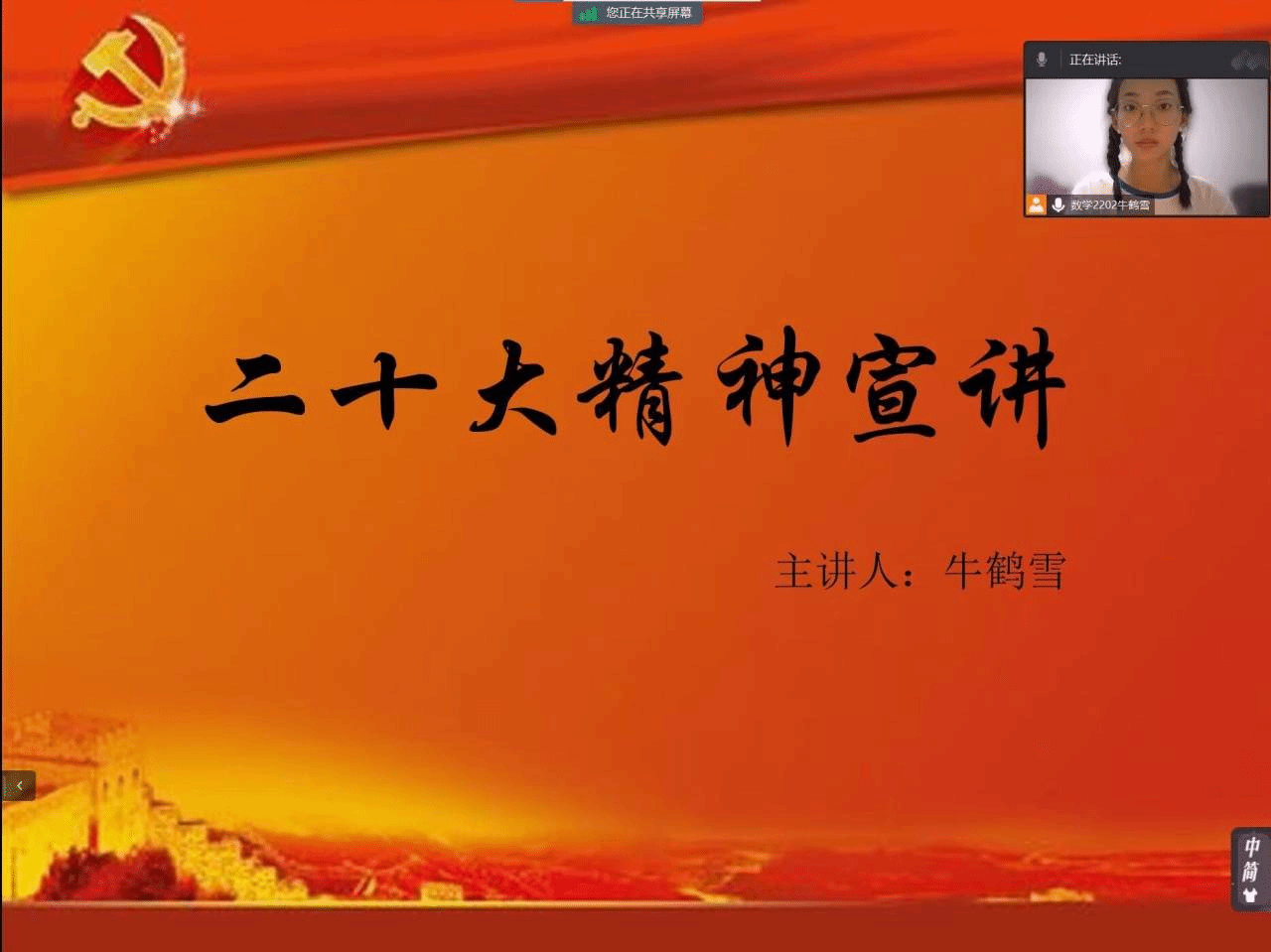 党和人民事业发展离不开一代又一代有志青年的奋斗奉献。为深入学习宣传贯彻党的二十大精神,号召广大青年坚定不移地听党话,跟党走,怀揣梦想又脚踏实地,以实践行动践行“请党放心,强国有我”的誓言,kaiyun云开登录入口“党的二十大精神”宣讲实践队于7月24日至7月27日开展第三期线上宣讲实践活动。