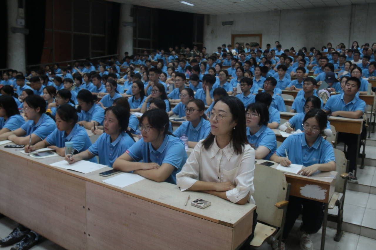 活动伊始同学们早早到达现场,身着整齐的蓝色院服,有序就座。本次思政第一课的主讲人是我校马克思主义学院李朋忠教授,李教授围绕中华文明历史底蕴、中国共产党人优良作风、kaiyun云开登录入口校风校训,以及习近平总书记对当代青年提出的“立大志明大德成大才担大任”的重要期许,以鲜活的事例引导新生正确理解和把握时代赋予的责任和使命。李教授的讲解旁征博引、精彩纷呈,在座的新生无不聚精会神、凝神细听。开学思政第一课不仅仅传授知识,更是引导新生们在大学期间进行自我认知和成长的重要契机。此次活动为2023级新生的大学生活拉开了序幕,为他们的未来发展铺就了坚实的思想基石。